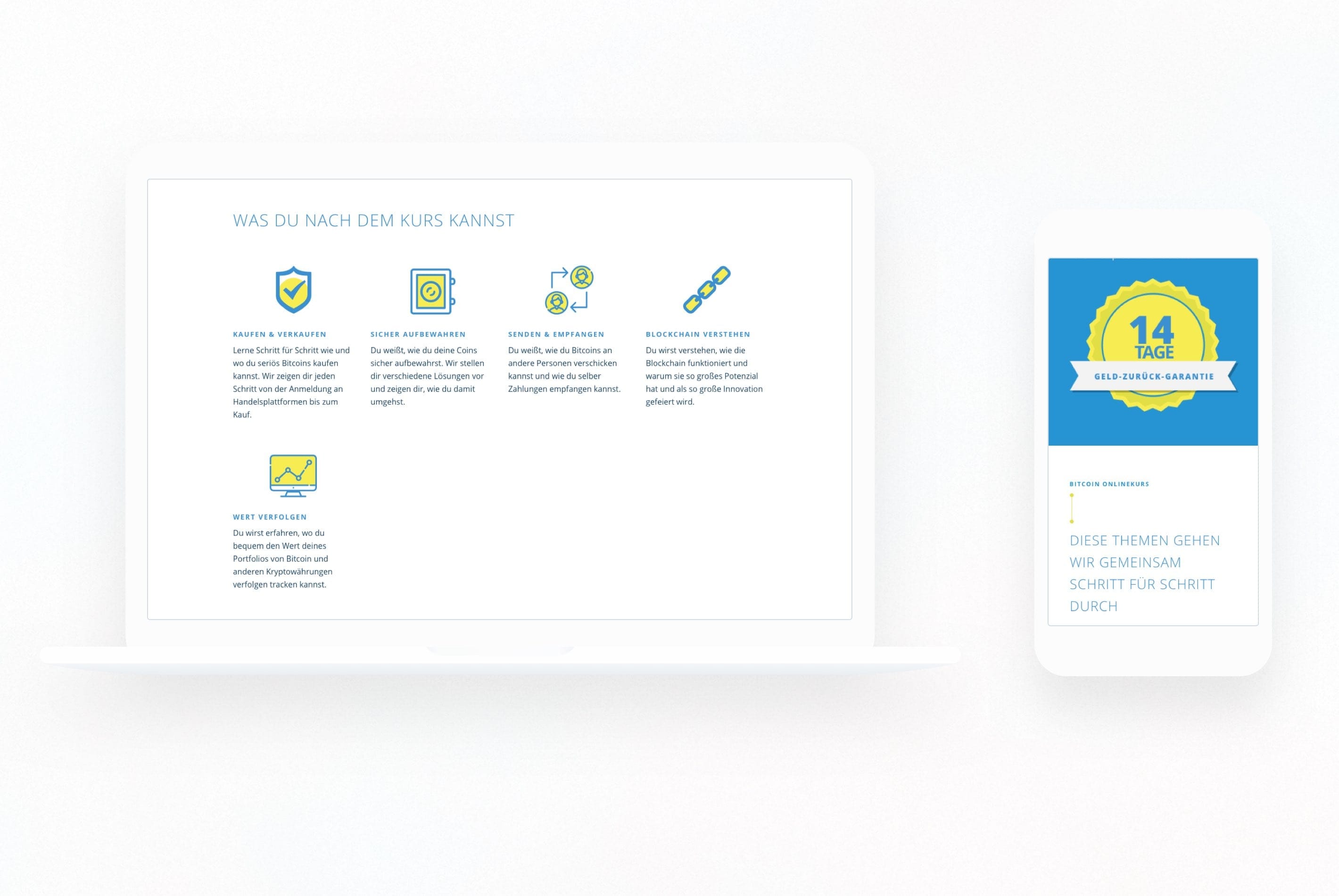 Neben dem Kurskonzept und den Kursinhalten haben wir die Marketingstrategie und die Entwicklung der Onlineplatform übernommen und bisher mehrere hundert Kursteilnehmer #kryptofit gemacht.